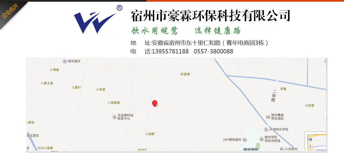 宿州市豪霖環??萍加邢薰緦I致力于水處理產品和系統水處理工程,集產品的開發與銷售、工程配套與安裝、技術咨詢與服務于一體的新型環保企業。主營產品:家用、商用純水機系列,能量活水機系列,家用、中央用凈水器系列,管線機,泵、膜系列,各種零配件、水處理耗材等配套產品系列,循環冷卻水處理系統,鍋爐軟化水處理系統,海水、苦咸水淡化、污水處理系統,軟化及過濾裝備,紫外線及臭氧消毒設備等全部產品。